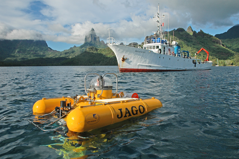 Von Bord des gecharterten Forschungsschiffs „Braveheart“ aus tauchte „Jago“ in Tiefen von bis zu 350 Metern. Während der bis zu sieben Stunden dauernden Tauchgänge entlang der steilen und teilweise senkrechten Vorriffhänge von Tahiti und Moorea fanden die Forscher verkarstete Riffstrukturen, die bis in 150 Meter Tiefe reichten. „Die Verkarstungen deuten darauf hin, dass diese Riffe einmal trocken gelegen haben, das heißt sie befanden sich oberhalb der Wasseroberfläche“, erläutert Prof. Dullo. Das war vermutlich vor etwa 20 000 Jahren während der letzten großen Eiszeit. „Es war extrem beeindruckend, in ‚Jago‘ zu sitzen und in kristallklarem Wasser mit Sichtweiten von bis zu 100 Metern an tausenden von Jahren Erdgeschichte vorbeizugleiten“, erinnert sich Prof. Dullo nach der Rückkehr. Das mit dem Tauchboot gesammelte Daten- und Probenmaterial soll nun helfen, den Verlauf des Meeresspiegelanstieges seit der letzten Eiszeit möglichst detailliert zu rekonstruieren.