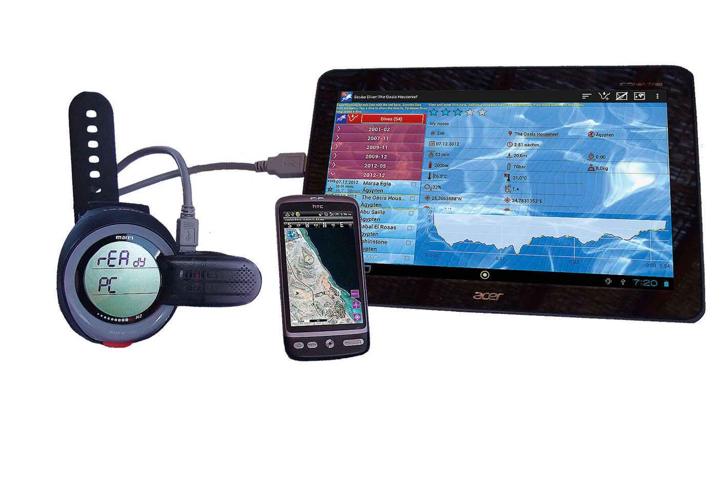 Diese Funktionen bekommt man im »Data«-Pack von DiveMate für 3,99 Euro. Wirklich interessant wird jedoch erst das Erweiterungspaket »USB«-Pack (3,99 Euro). Hier ist es möglich den Tauchcomputer direkt am Smartphone oder Tablet auszulesen. Benötigt wird lediglich das Verbindungs-Kabel vom Tauchcomputer und unter Umständen ein USB-Host-Kabel, das Tauchcomputer und Endgerät miteinander verbindet. Wer sich zusätzlich auch noch mit Karten der Tauchplätze versorgen möchte, dem erlaubt das »Map«-Pack (3,99 Euro) Karten vom »nv-Seekarten«-Verlag und »Reise Know-How«-Verlag zu integrieren. Das Gesamtpaket gibt es für 9,58 Euro. Aus unserer Sicht eine lohnende Investition für all jene, die ein digitales Allround-Logbuch wollen.