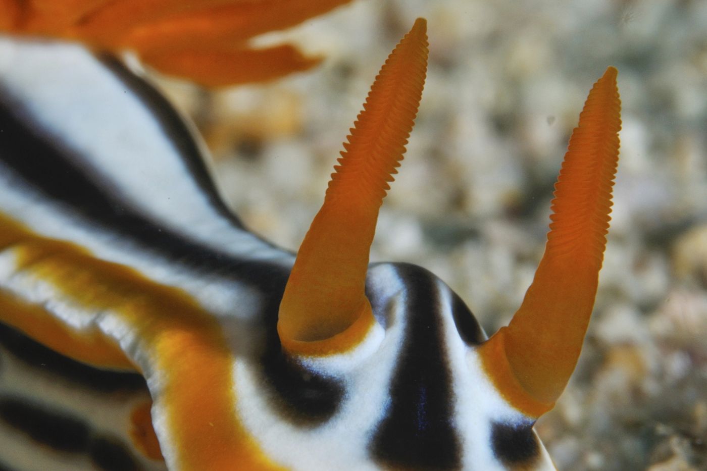 Rhinophoren: Jede Nacktschnecke trägt vorne ein paar Fühler am Kopf. Sie dienen als Riechorgan.