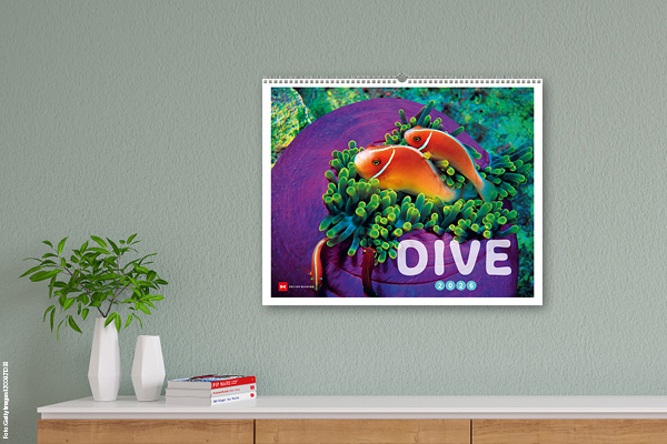 Der Kalender »DIVE« zeigt jeden Monat eine brillante Großaufnahme – mal still und majestätisch, mal bunt und quirlig, immer aber atemberaubend schön. Ein kleines Stück Unterwasserzauber, das jeden Raum bereichert und garantiert das Fernweh weckt. 🌺💙