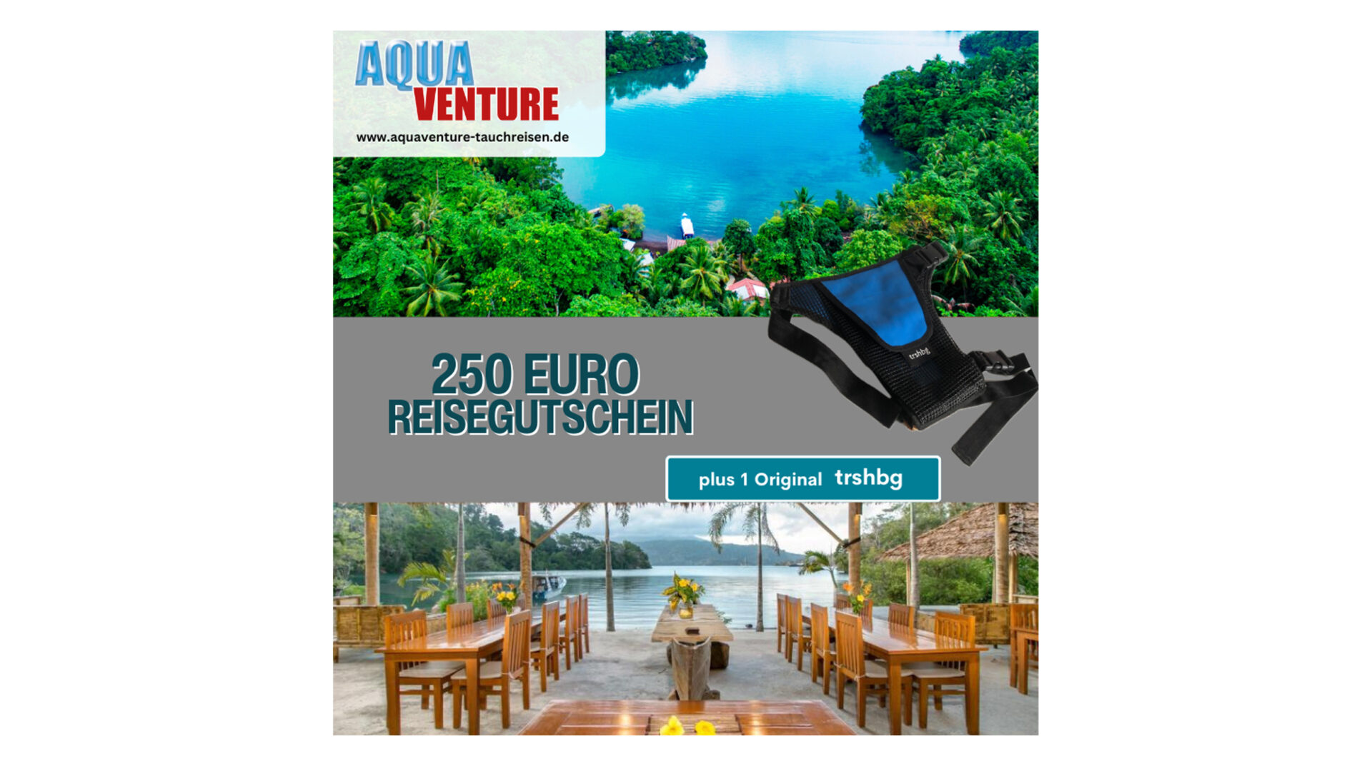 Türchen 22 wird heute richtig bunt – denn darin steckt gleich doppelte Vorfreude! Ein 250-Euro-Reisegutschein und ein TRSHBG warten darauf, eure nächsten Tauchabenteuer noch schöner und noch nachhaltiger zu machen. 🎄🌍🐠