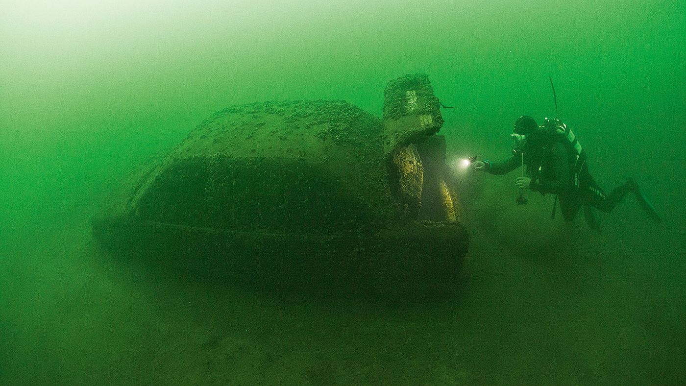 Auf der Seeseite der Basis trifft man einzelne abgestorbene Bäume, an denen sich Kolonien von Dreikant-Muscheln angesiedelt haben. Mehr Bäume, mehr Abwechslung und mehr Mystik bietet das Westufer, wo der See mit knapp 30 Metern auch am tiefsten ist. Die Überfahrt mit dem kleinen Boot, das demnächst einen größeren Vertreter zur Seite bekommt, dauert nur wenige Minuten. Hier angekommen, taucht man in einen Kessel, der in einer Tiefe von acht bis zehn Metern von Baumstämmen gesäumt ist. An ihnen haben sich Algen, Schwämme und Muscheln festgesetzt. Zusammen mit dem trüben, grünen Licht bekommt das Tauchen hier einen unwirklichen Touch.