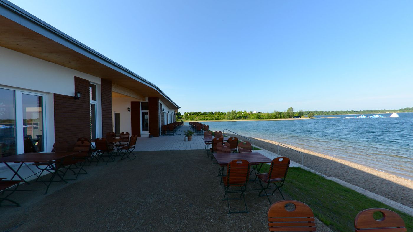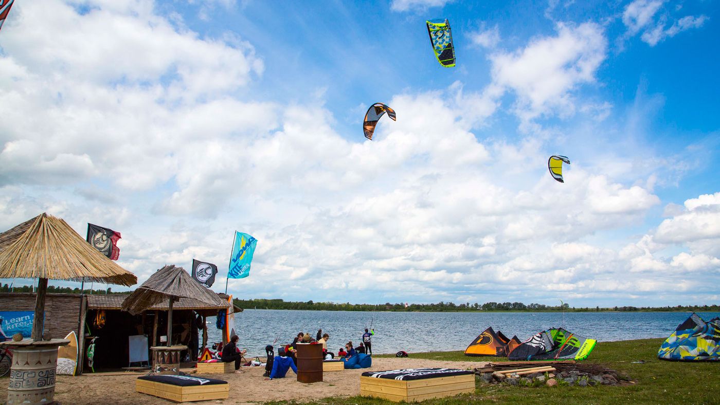 Zur Zeit konkurrenzlos ist das Nutzungskonzept des Sees. Das gesamte Ostufer wurde von Camp David, einem bekannten Kleidungshersteller, gepachtet und zum Sport-Resort ausgebaut. Hier gibt es Kiten, Surfen, Segeln, Beachvolleyball – junge, stylische Sportarten, die ein ebensolches Publikum anziehen. Erst vor einem Jahr offiziell eröffnet, ist das Sport-Resort zum Vorzeigemodell geworden. So ist es Austragungsort von Beachvolleyball-, Surf- und Kite-Wettkämpfen, bietet mit dem Wibit-Wasserpark Deutschlands größte Wasserburgen-Anlage und richtet Kinder- und Jugendcamps aus. Selbst der angeschlossene Campingplatz ist etwas ganz Besonderes. Hier kann man entweder in Bungalows übernachten oder man mietet sich in einer der Mongolen-Jurten ein – unbedingt zu empfehlen. Und wer einfach nur stilvoll und gut essen will oder den Sonnenuntergang am See mit einem Cocktail begießen mag, findet im schicken Strandrestaurant »Levante« die Gelegenheit dazu – auch unbedingt zu empfehlen.