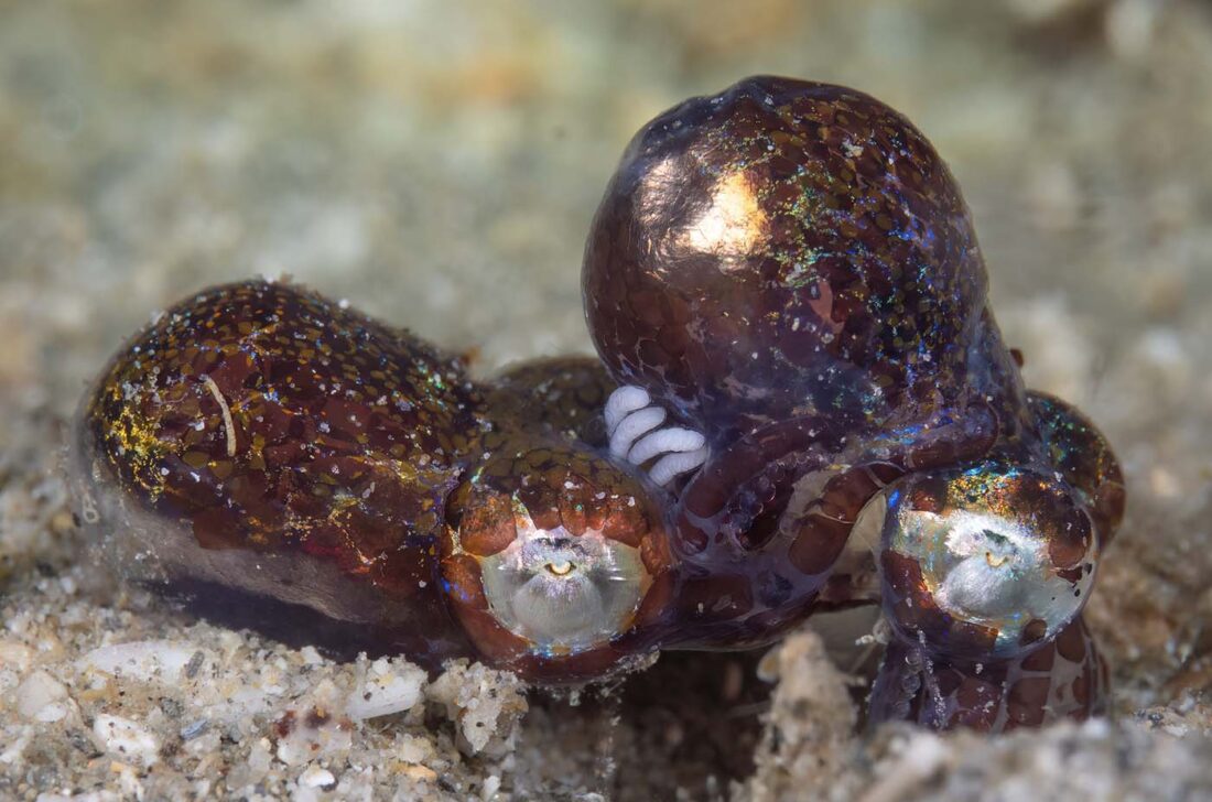 Und immer wenn man denkt, es geht nicht besser, belehrt uns Rosebe eines Besseren. Pink Eye Goby neben Bearded Goby, eine in Flammen getauchte Fadenschnecke leuchtet wie ein Feuerwerk. Zwei Zwergtintenfische versinken im Liebesrausch. Ein Coconut-Oktopus sucht Schutz in seinen Muschelhälften, während sich der Chocolate Shrimp wortwörtlich von seiner Schokoladenseite zeigt.