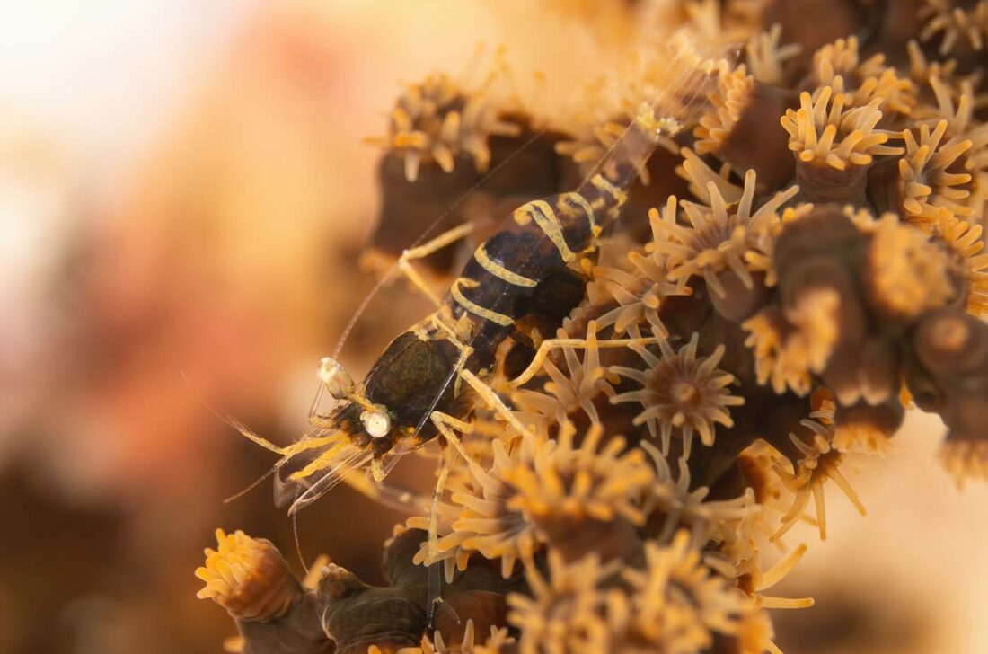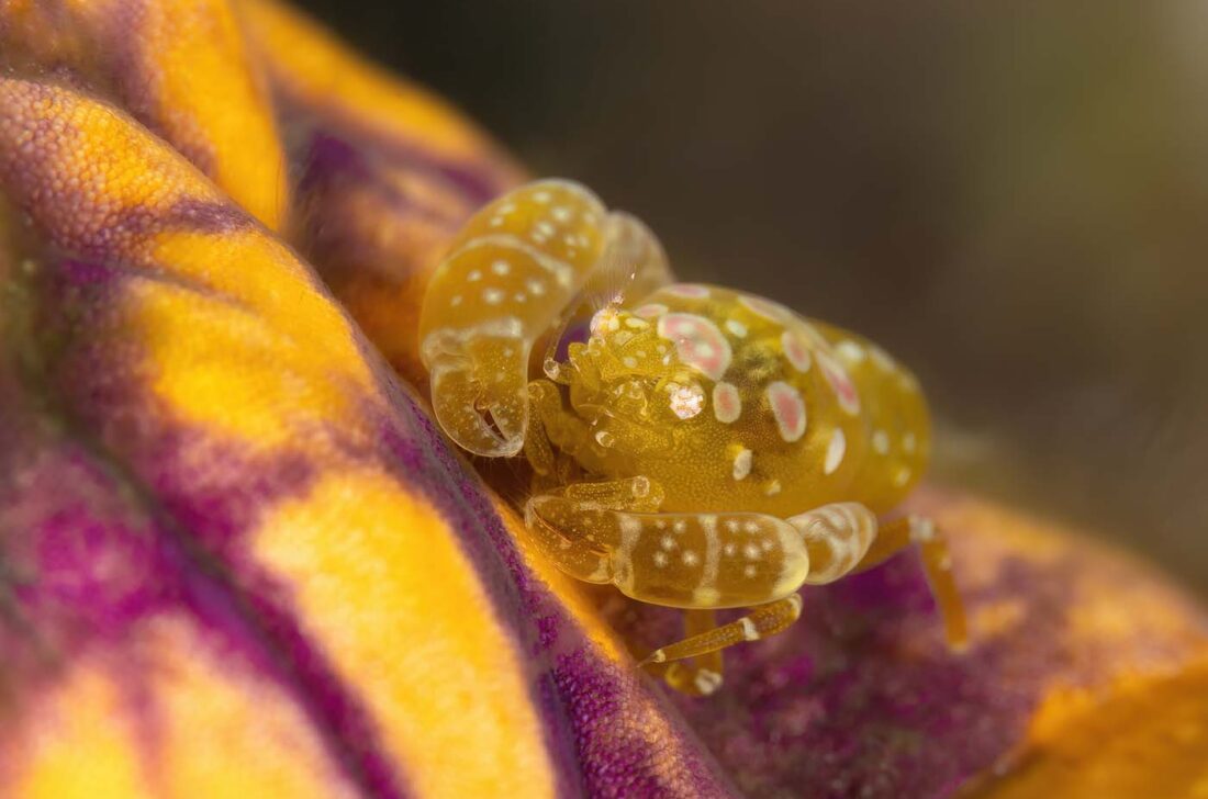 Der winzige, kaum reiskorngroße Shrimp zeigt sich in Avocado-, Lachs- oder Weiß-Braun-Tönen. Und es geht weiter: Drei verschiedene Pygmäenseepferdchen-Arten auf einem einzigen Tauchgang, die seltene Leopardengarnele und zum Abschluss ein farbintensiver Tunicate Shrimp.