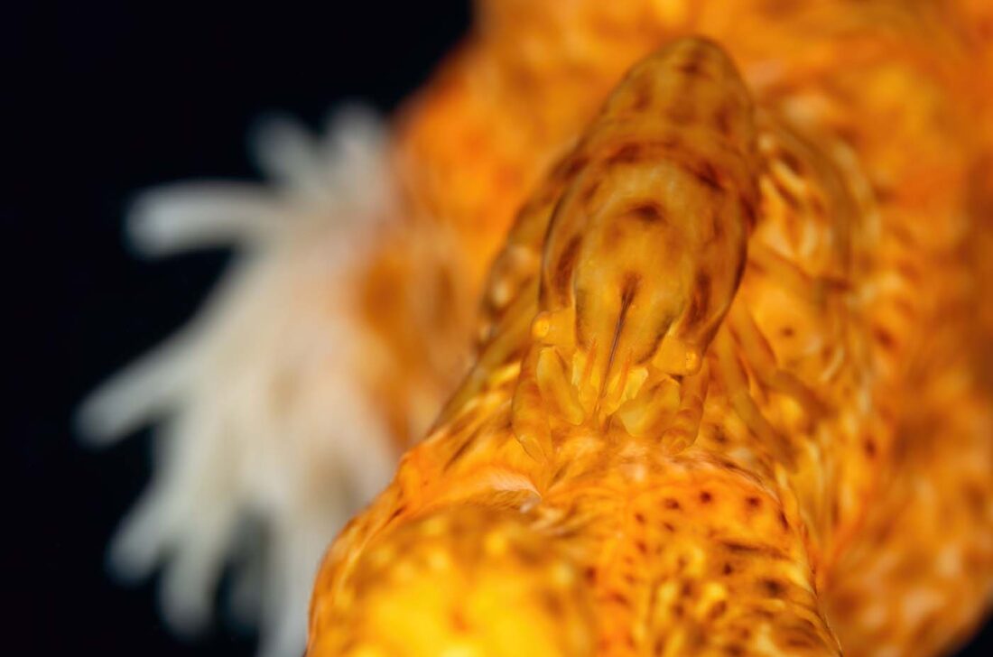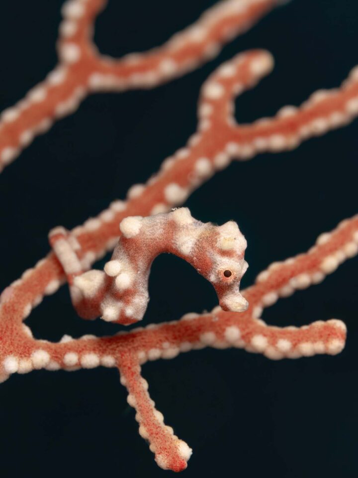 Während sich die Speicherkapazität unserer Kamera verringert, zeigt Rosebe auf eine Melibe Digitata, einer noch befremdlicheren Art der Melibe-Familie. Nur ein paar Flossenschläge entfernt posiert ein zwergenhafter Hairy Shrimp. Ein Denise-Pygmäenseepferdchen trifft sich mit einer Garnele in einer umherwiegenden Gorgonie. Pontohi- und Severn‘s-Pygmäenseepferdchen stehen Modell – ein Novum, das Fotografen begeistert.