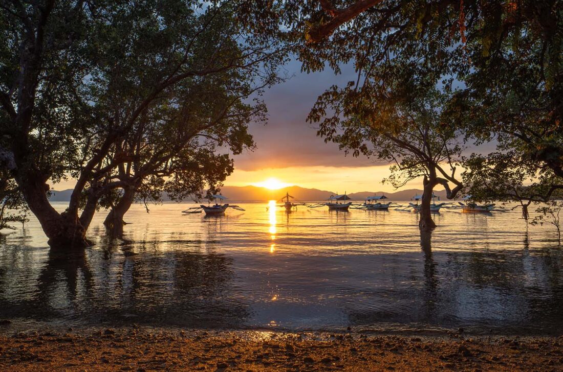 Die Sonne versinkt langsam hinter den grünen Hügeln der Insel Tablas und taucht das Resort in warmes Gold. Ein leichter Wind streicht über das Wasser, trägt das leise Rauschen der Wellen ans Ufer und vermischt sich mit dem Klang der umherfliegenden Zucker- und Eisvögel. Ein weites Meer, das in unzähligen Blautönen schimmert, und Küsten, die von üppigem Grün und weißen Stränden gesäumt sind.