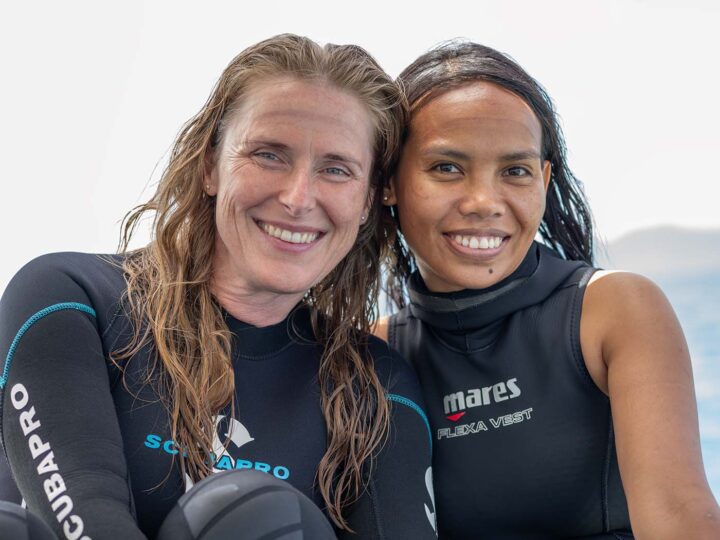 Die Autorin Melanie Benz (li.) mit Diveguide Rosebe.