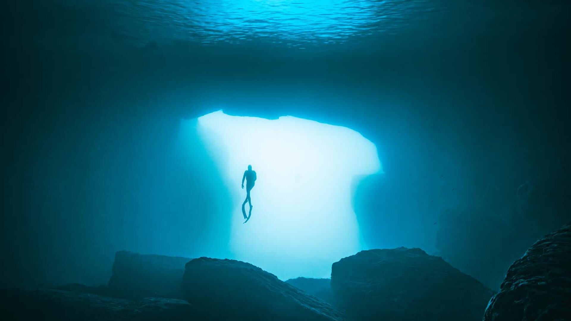 Nicht minder eindrucksvoll liegt die Cathedral Cave. Der Eingang befindet sich auf rund zehn Metern Tiefe. Fast am Ende wird es eng, ein Schacht öffnet sich – einst genutzt von Schmugglern und Piraten. Doch er hat keine Frischluftzufuhr, der Atemregler bleibt zwingend im Mund. Auch ist er nur für Taucher mit Höhlentauchausbildung geeignet. Beim zurück tauchen öffnet sich ein gewaltiger Dom, dessen Dimensionen sich erst beim Auftauchen erschließen. Hier gibt es eine Frischluftzufuhr – sicher genug, um an der Oberfläche den Atemregler herauszunehmen, miteinander zu sprechen oder einfach den Hall im Fels zu genießen. Besonders Apnoetaucher schätzen diese Grotte, in der Wasser, Fels und Licht eine fast sakrale Atmosphäre schaffen. Dieser Bereich kann auch ohne spezielle Höhlen-Tauchausbildung erreicht werden.