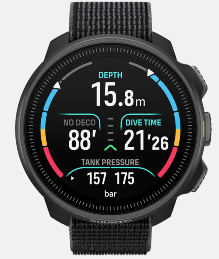 Der Suunto Nautic ist ein voll ausgestatteter Tauchcomputer für anspruchsvolle Freizeit- und technische Taucherinnen und Taucher. Sein 3,26-Zoll-AMOLED-Display mit 720 × 382 Pixeln sorgt für ausgezeichnete Lesbarkeit, selbst bei wechselnden Lichtverhältnissen. Große, druckfeste Tasten gewährleisten eine sichere Bedienung, auch mit dicken Handschuhen.