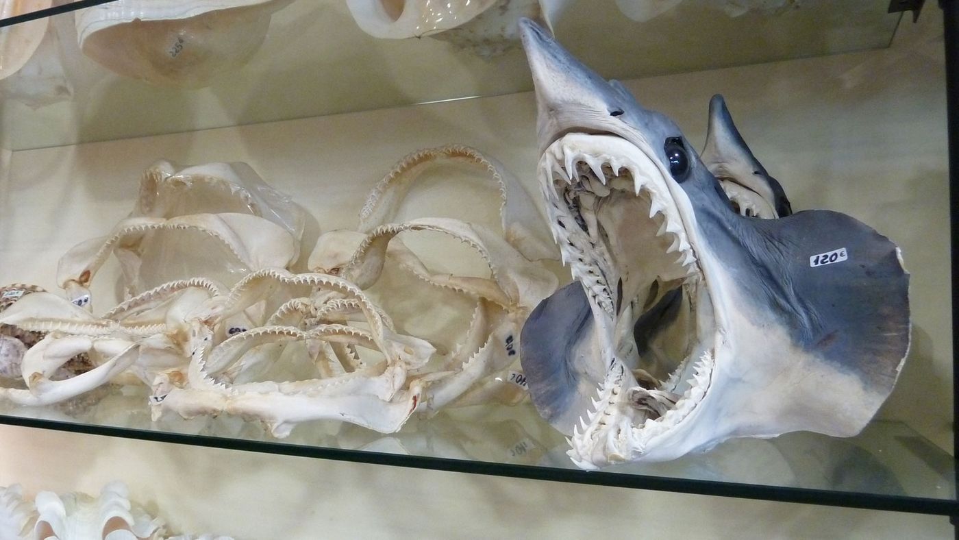 Dass man es hier mit dem Artenschutz nicht so genau nimmt, wird uns auch tagsüber in der Nähe des Fischereihafens schnell klar. In einem Souvenirgeschäft, direkt gegenüber dem Kreuzfahrtanleger, werden ausschließlich rote Korallen, Riesenmuscheln, Haigebisse und ganze präparierte Blauhaiköpfe angeboten. Fotografieren ist auch hier verboten! Auf unsere Nachfrage, was für Haiarten das seien, bekommen wir nur die Antwort: „Keine Ahnung, halt Hai!“