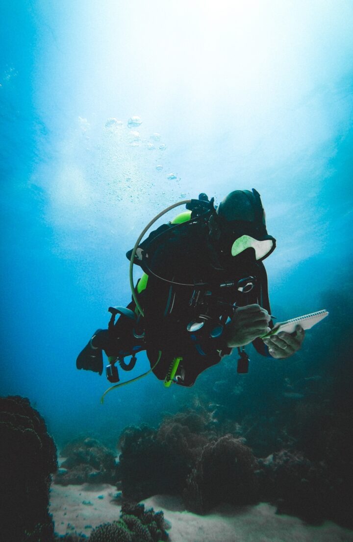 ▶ Notizbuch oder Schreibtafel: Skizzen und Notizen während oder nach dem Tauchgang helfen beim Erinnern.