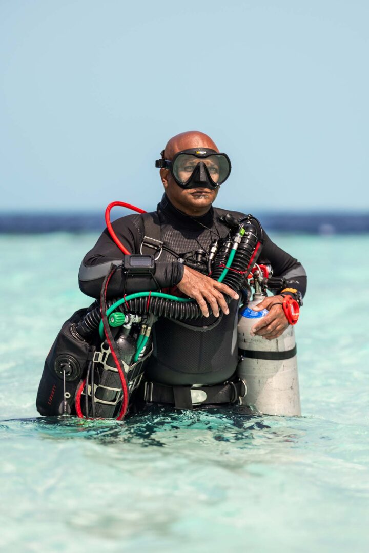 »Grenzen zu verschieben war schon immer etwas, das mich antreibt. In genau diesen Momenten erkennen wir, wozu unser Geist wirklich fähig ist. Across Maldives wird die größte Herausforderung meines Lebens – und auch eine sehr persönliche. Einer der letzten Sätze meines Vaters vor seinem Tod war: »Es würde mich nicht wundern, wenn Sie einmal quer durch die Malediven tauchen«. Diese Expedition widme ich ihm«, sagt Shafraz (Shaff) Naeem.